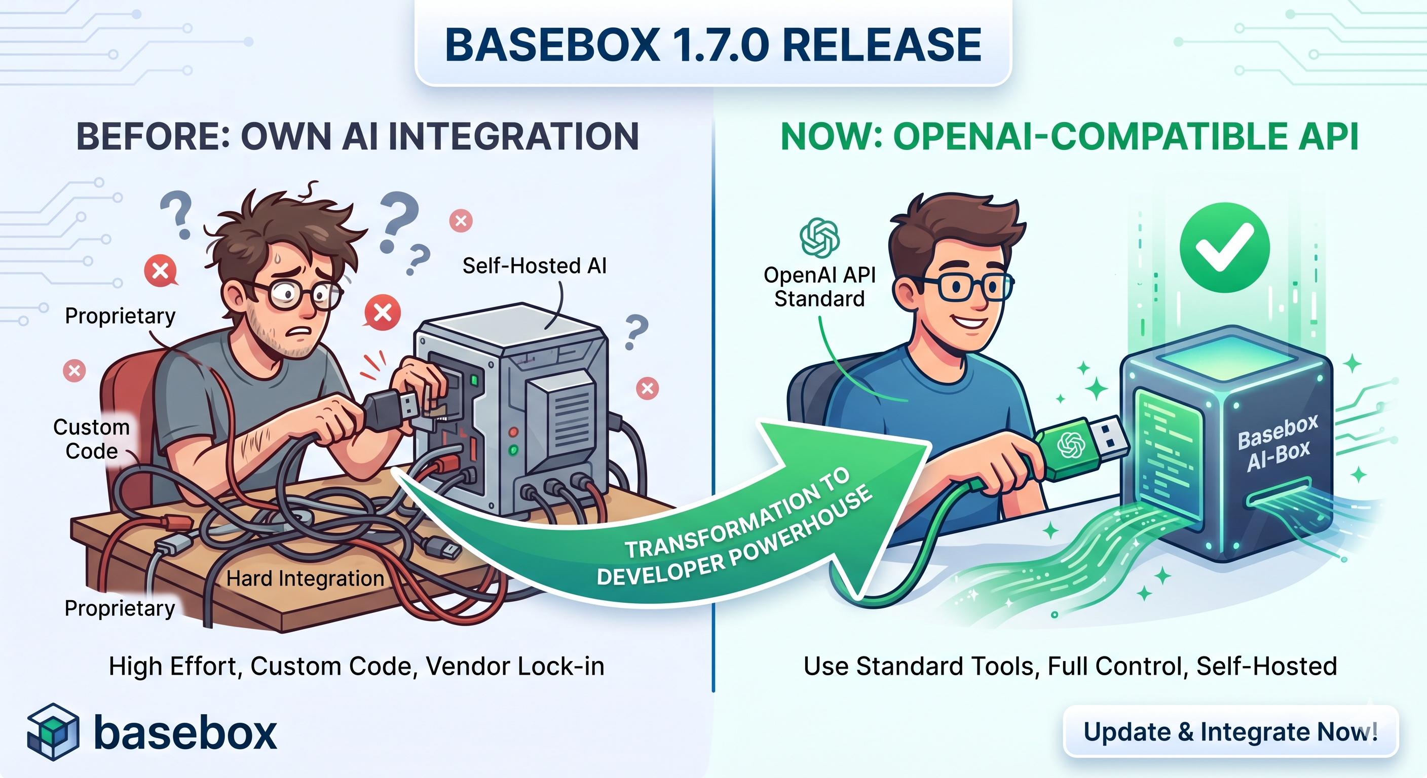 We're excited to announce Basebox 1.7.0, our most developer-focused release yet. This update transforms Basebox into a true platform for building AI-powered applications, while maintaining the privacy, security, and control you expect from self-hosted infrastructure.